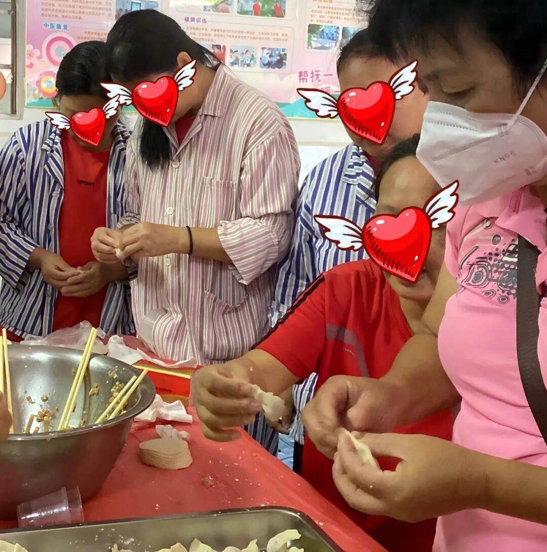 活动现场,患者、家属和医护人员围坐在一起,分工协作,从擀皮、调馅到包饺子,每一个环节都充满欢声笑语。